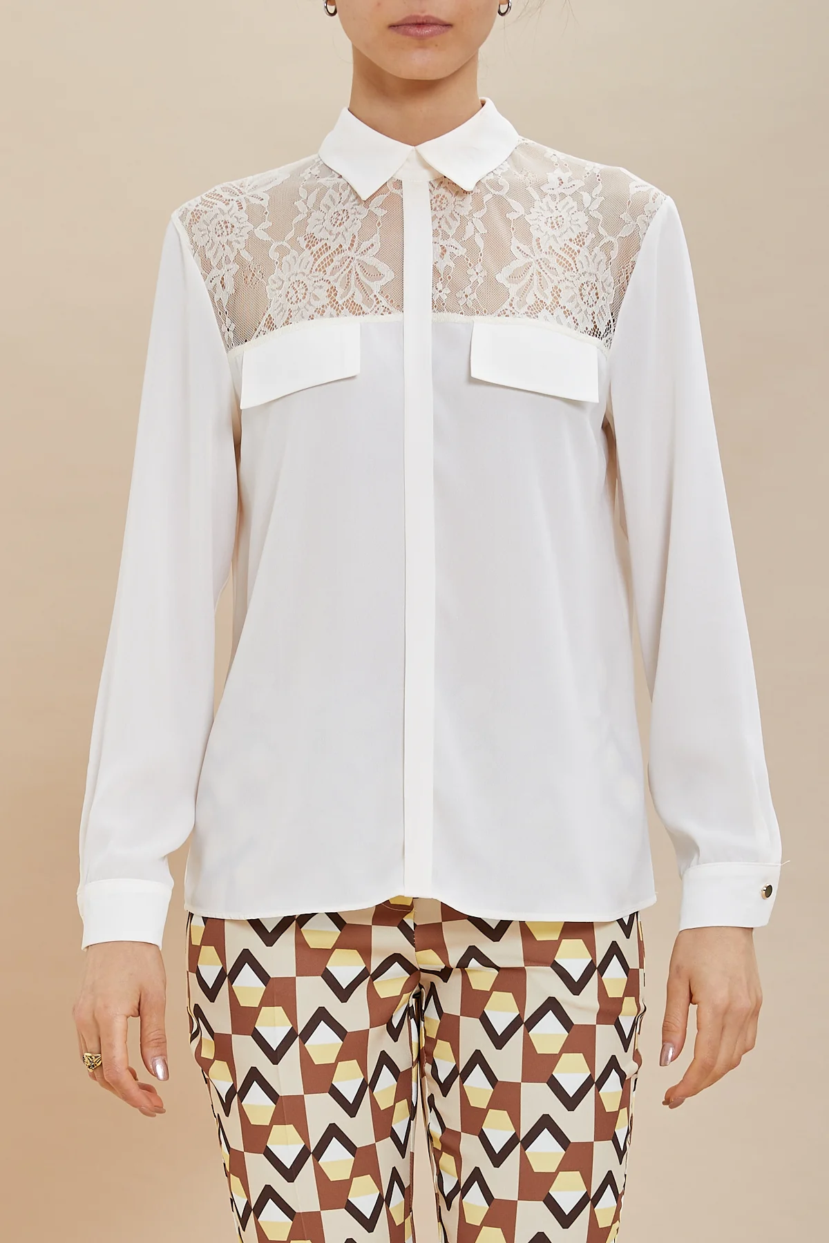 Camicia tess.crepe e pizzo c/pattine – DKE7829