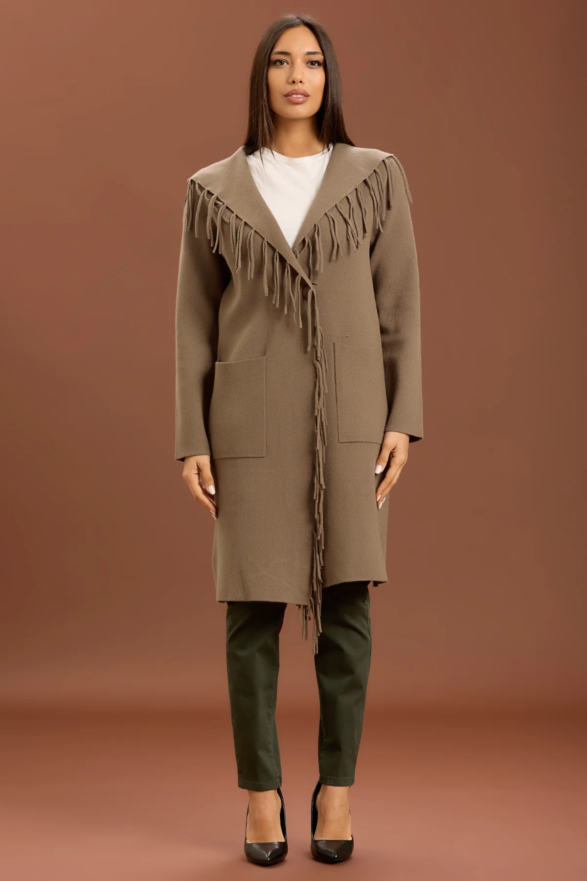 CAPPOTTO A MAGLIA CON FRANGE – DT00180