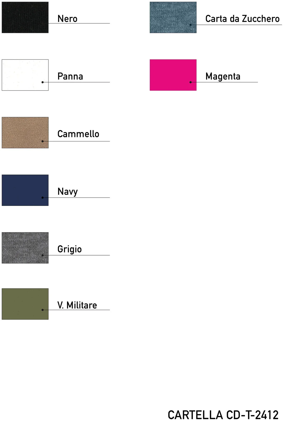 | Colore | Cammello, CARTA DA ZUCCHERO, Grigio, MAGENTA, NAVY, Nero, Panna, V.MILITARE |