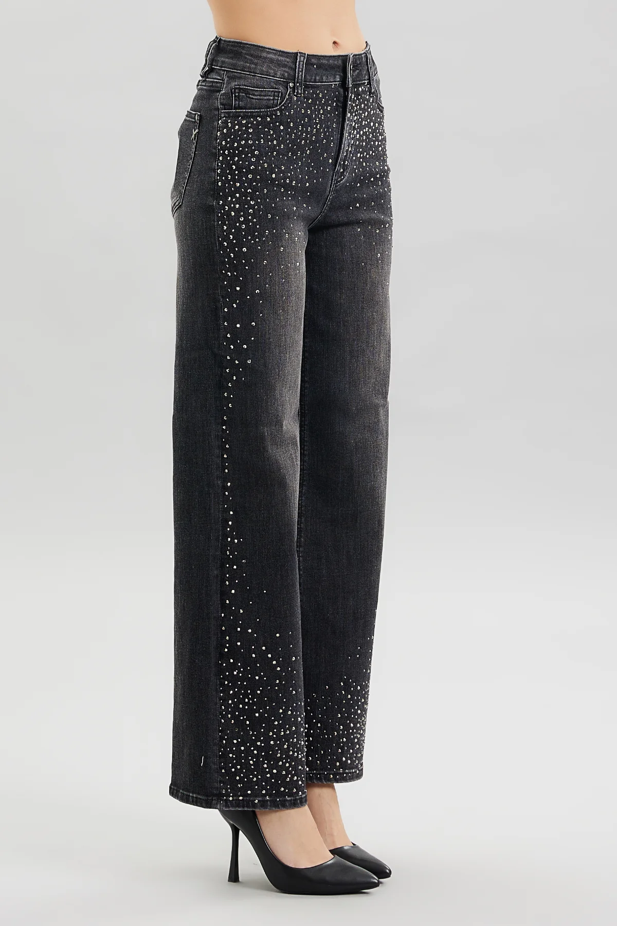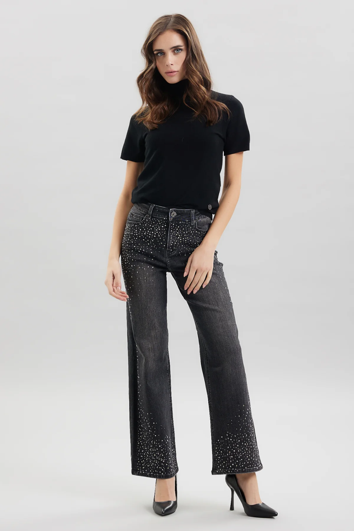 DOLL-DENIM FLARE BLACK CON STRASS – DT00225