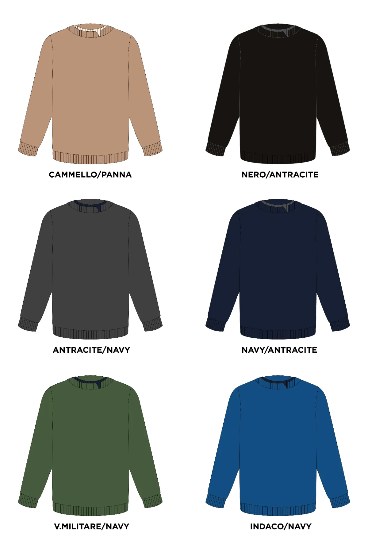 ANTRACITE/NAVY, CAMMELLO-PANNA, INDACO/NAVY, NAVY/ANTRACITE, NERO-ANTRACITE, V.MILITARE/NAVY