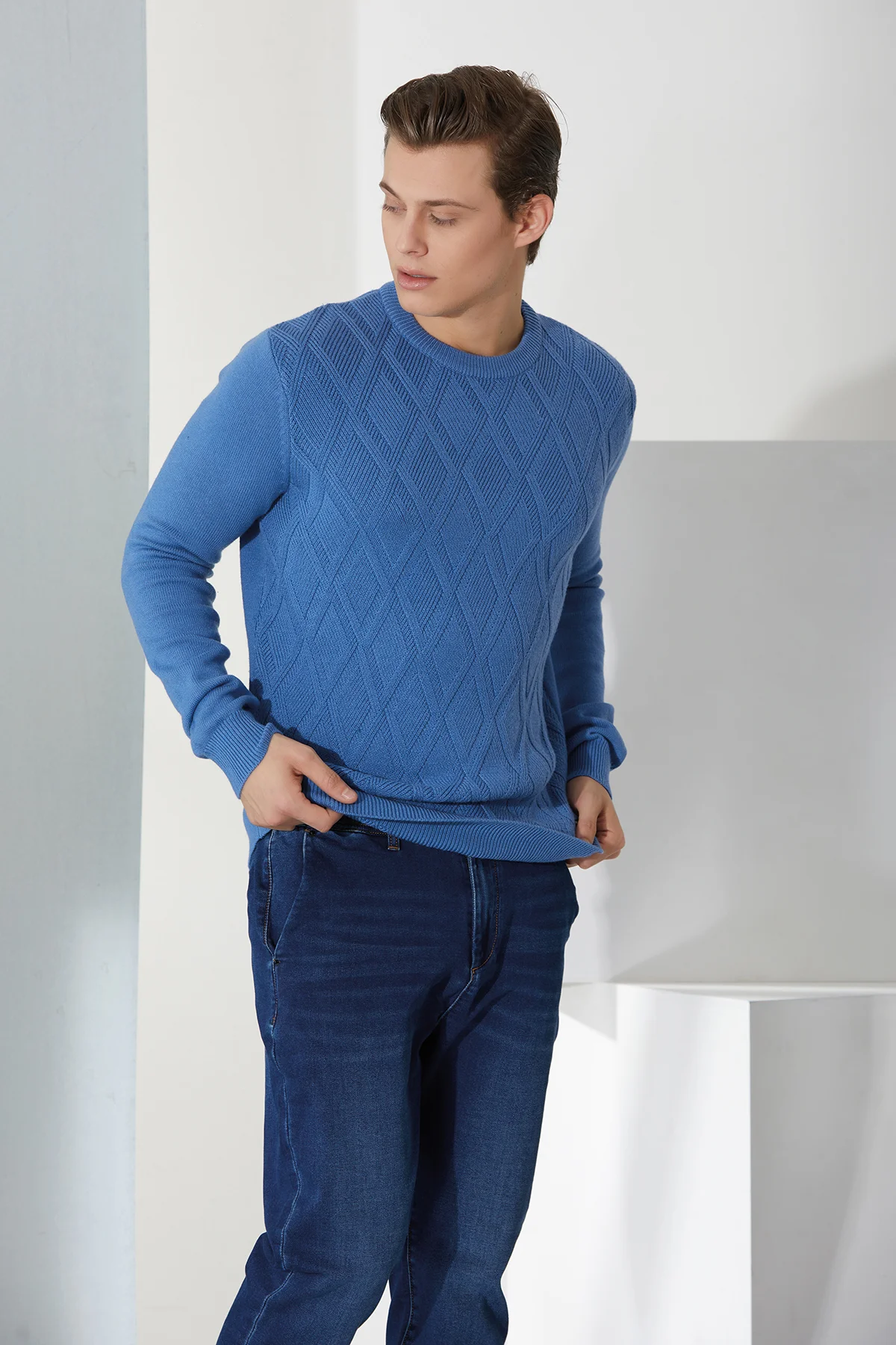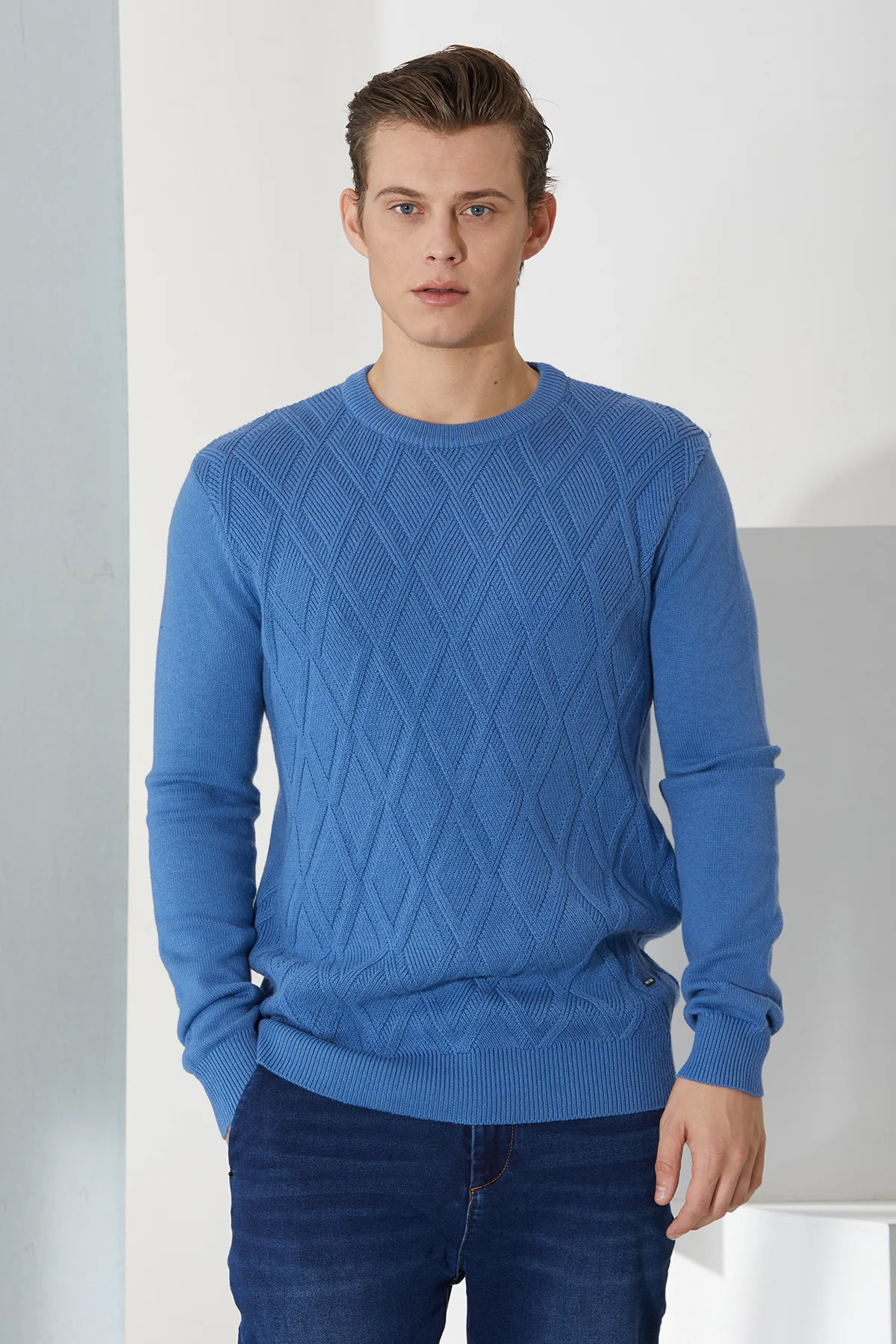girocollo lavorazione losanghe gauge 7 lana/cotone – UTA6416