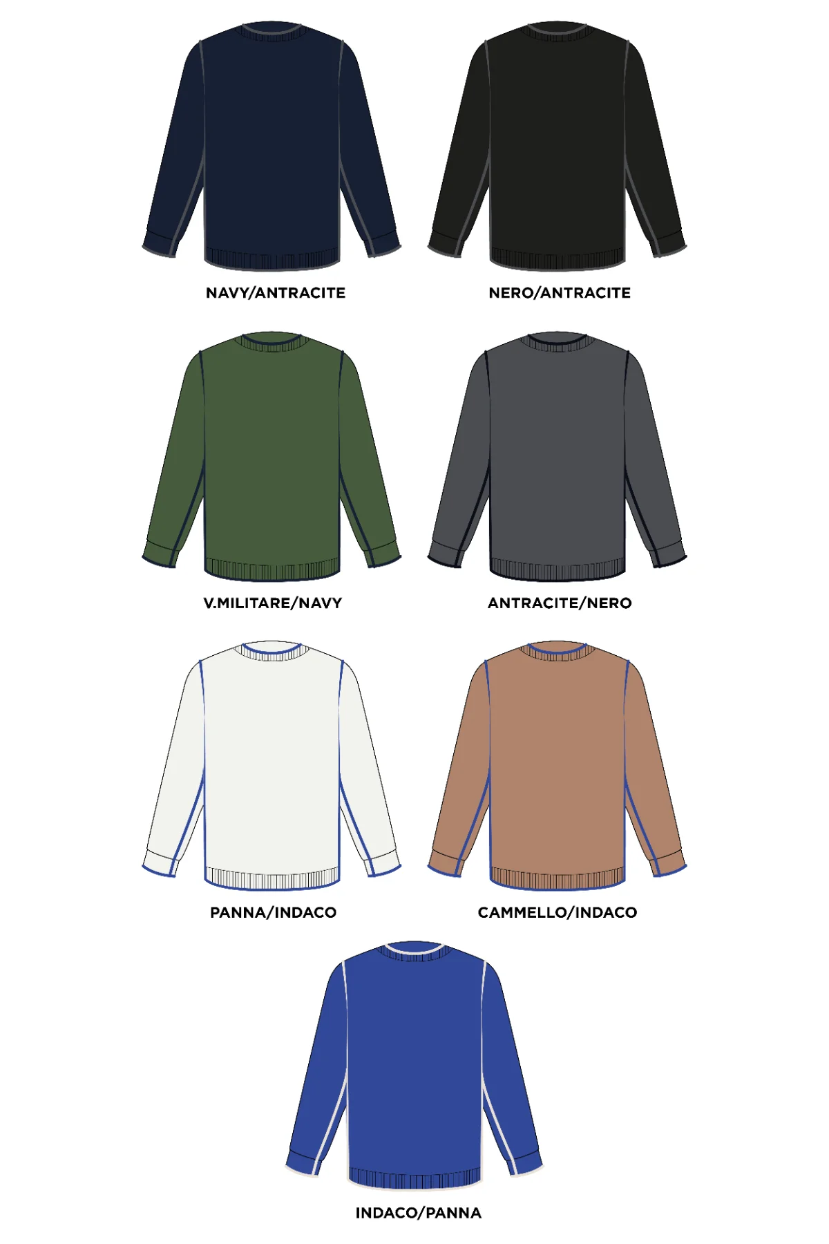 | Colore | ANTRACITE/NERO, CAMMELLO/INDACO, INDACO/PANNA, NAVY/ANTRACITE, NERO-ANTRACITE, PANNA/INDACO, V.MILITARE/NAVY |