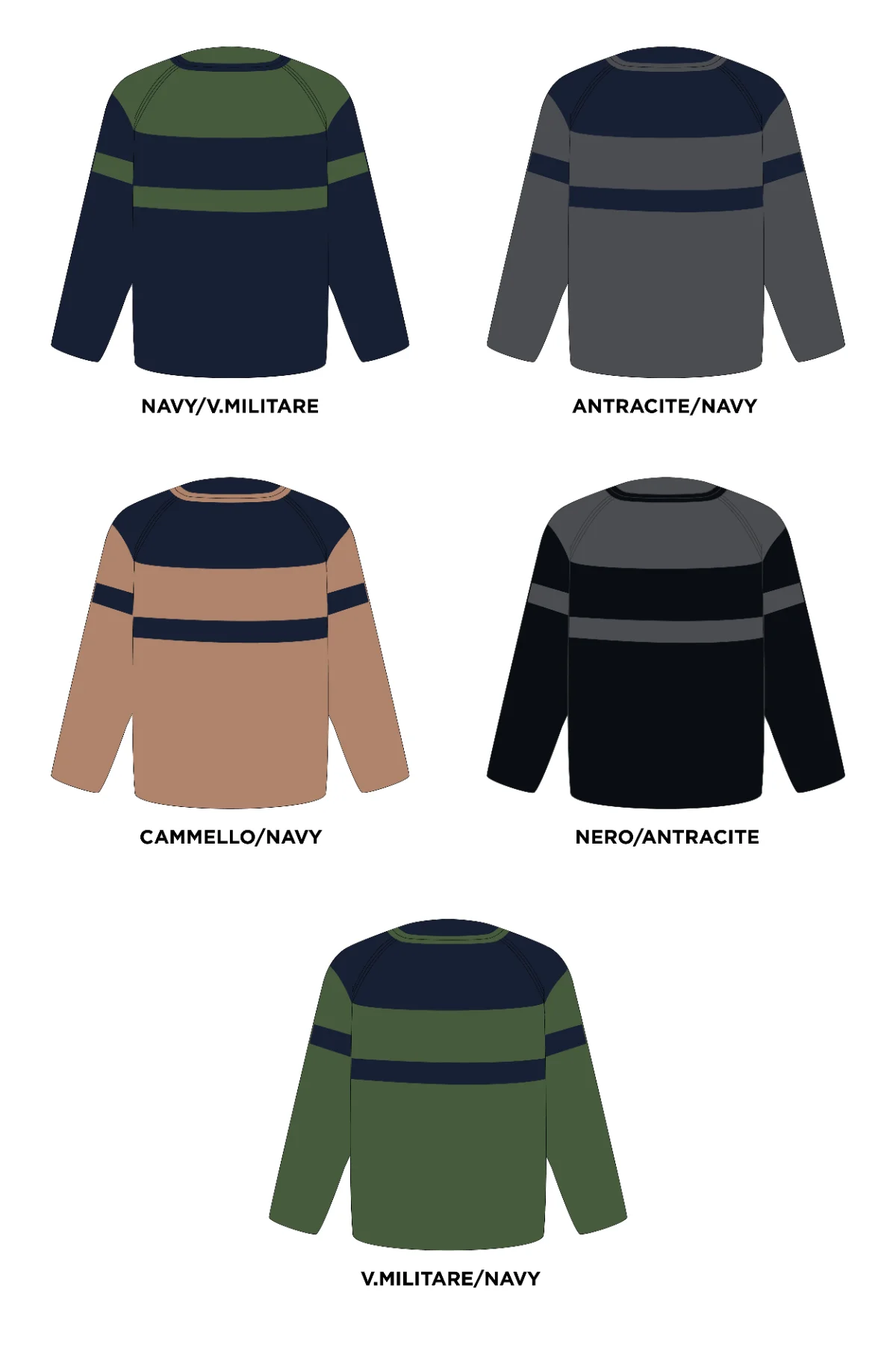 | Colore | ANTRACITE/NAVY, CAMMELLO/NAVY, NAVY/V.MILITARE, NERO-ANTRACITE, V.MILITARE/NAVY |