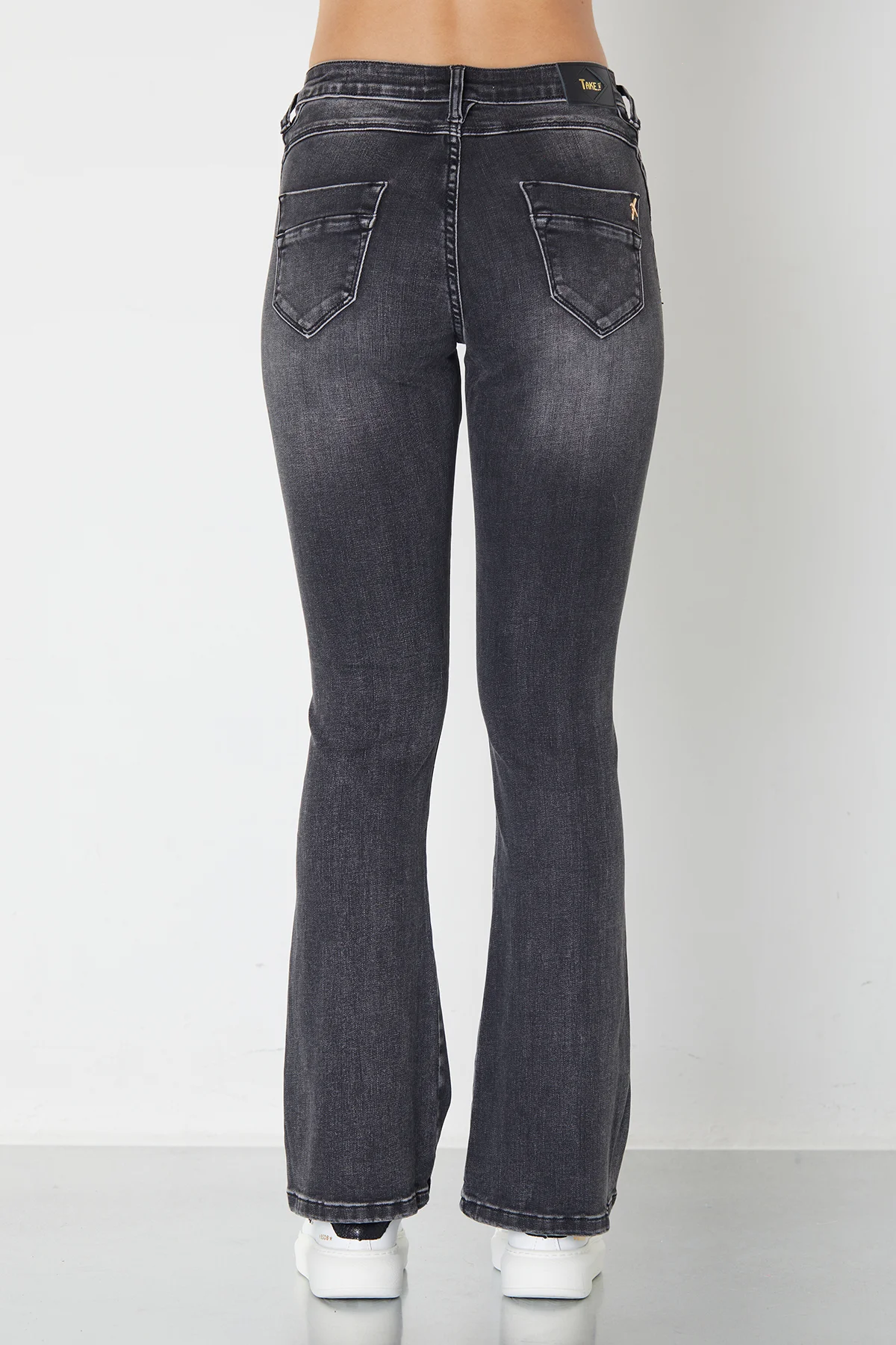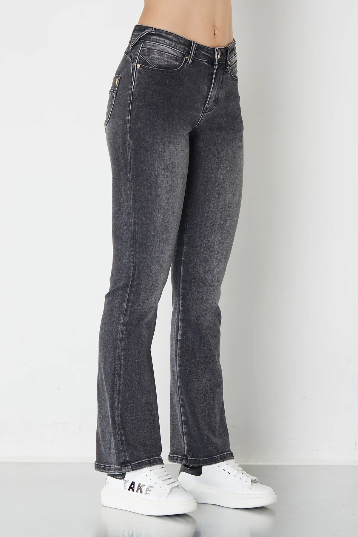 LAYRA-DENIM FLARE SLIM MEDIUM WAIST GREY BLACK - DTA7614