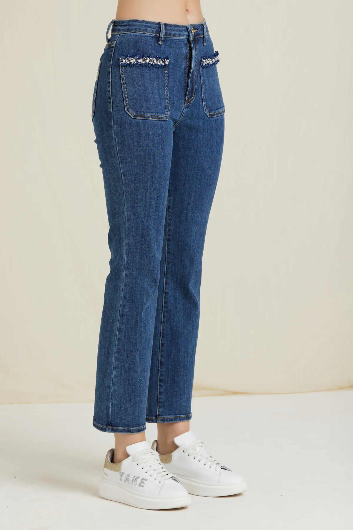 LENA-DENIM FLARE APPLICAZIONI TASCHE – DKE8261