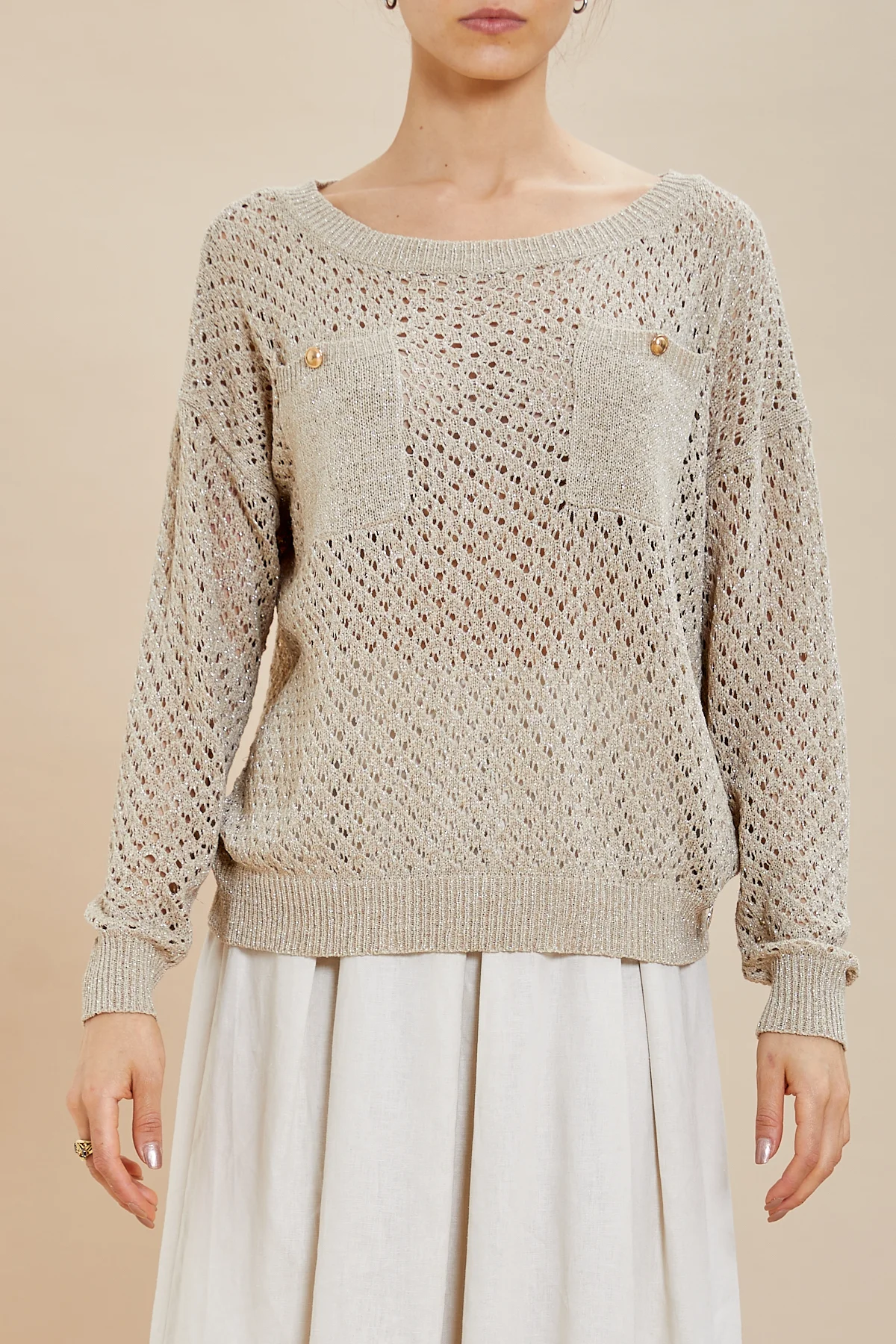 MAGLIA in fettuccia c/tasche applicate – DKE6009