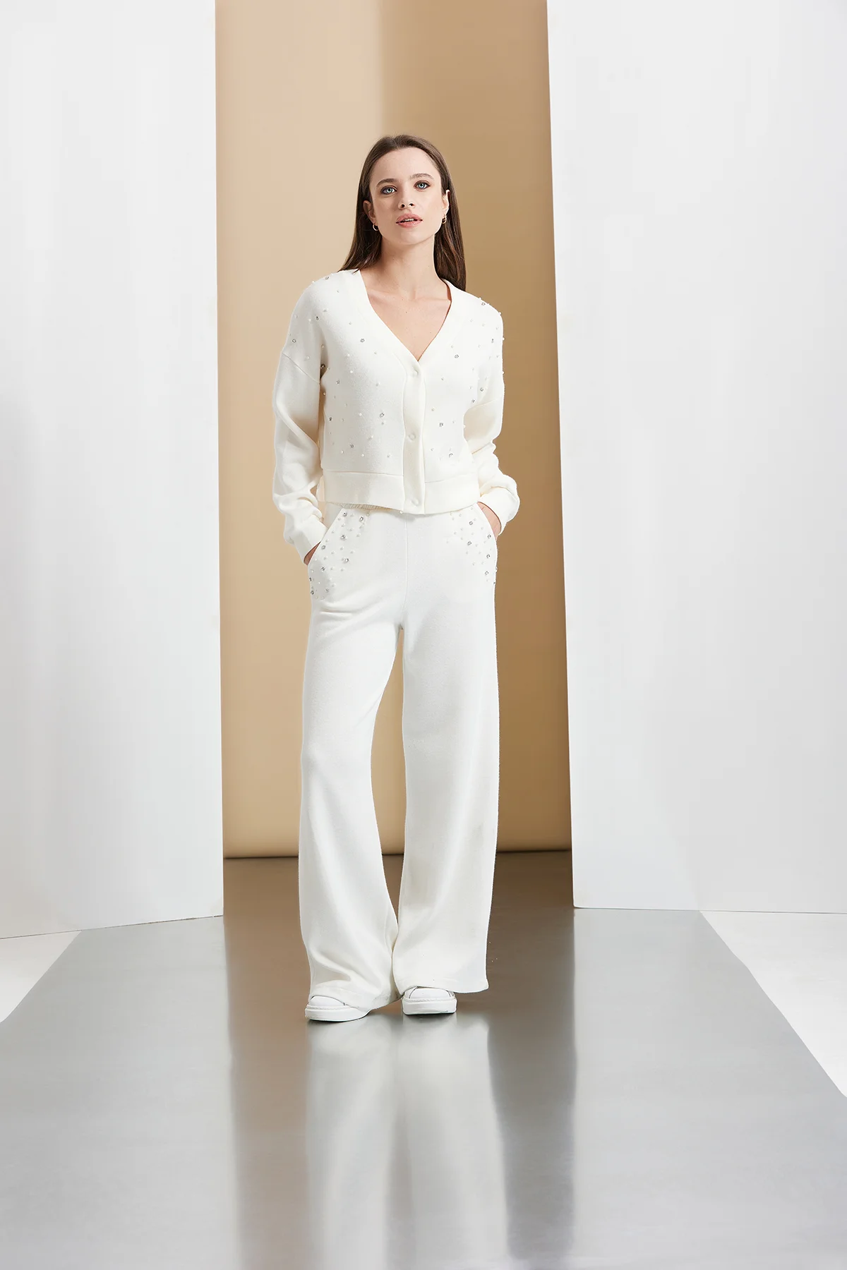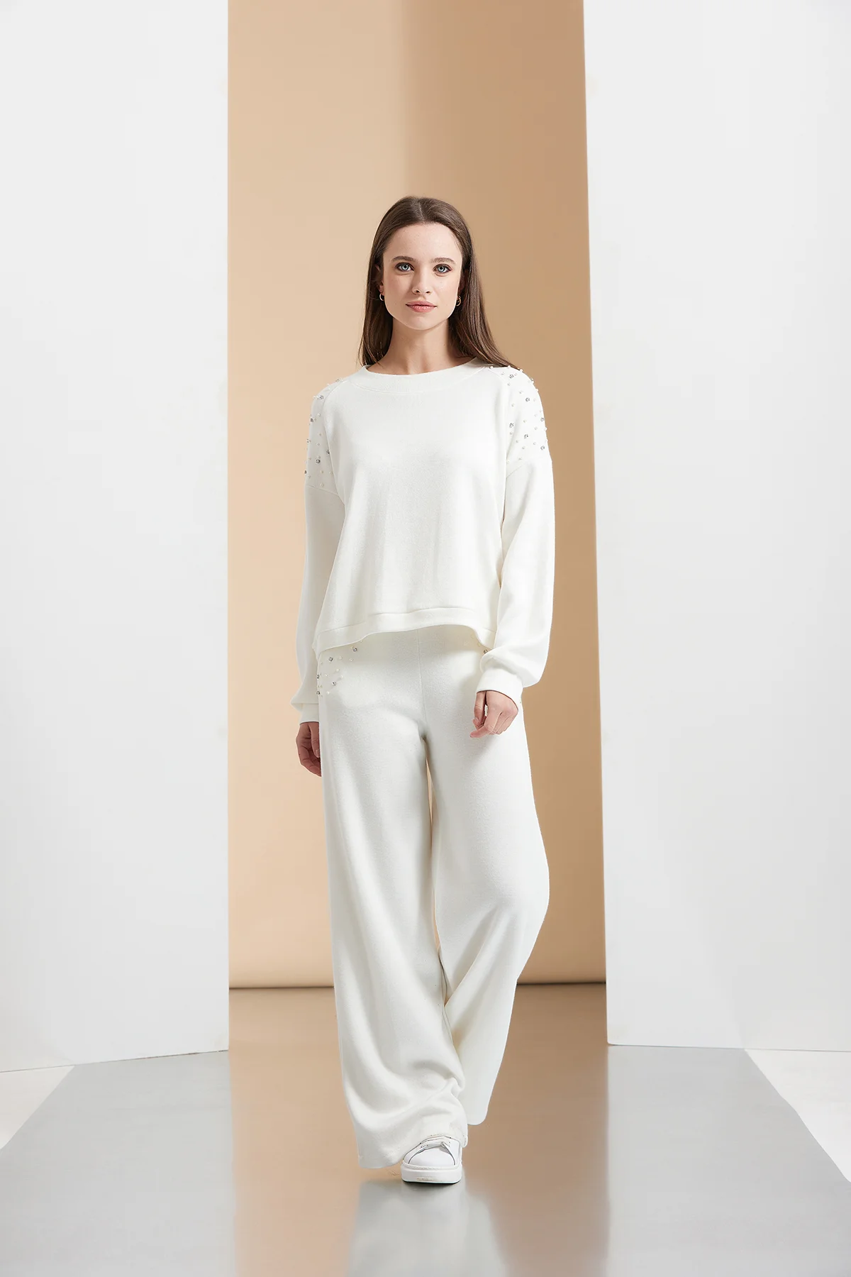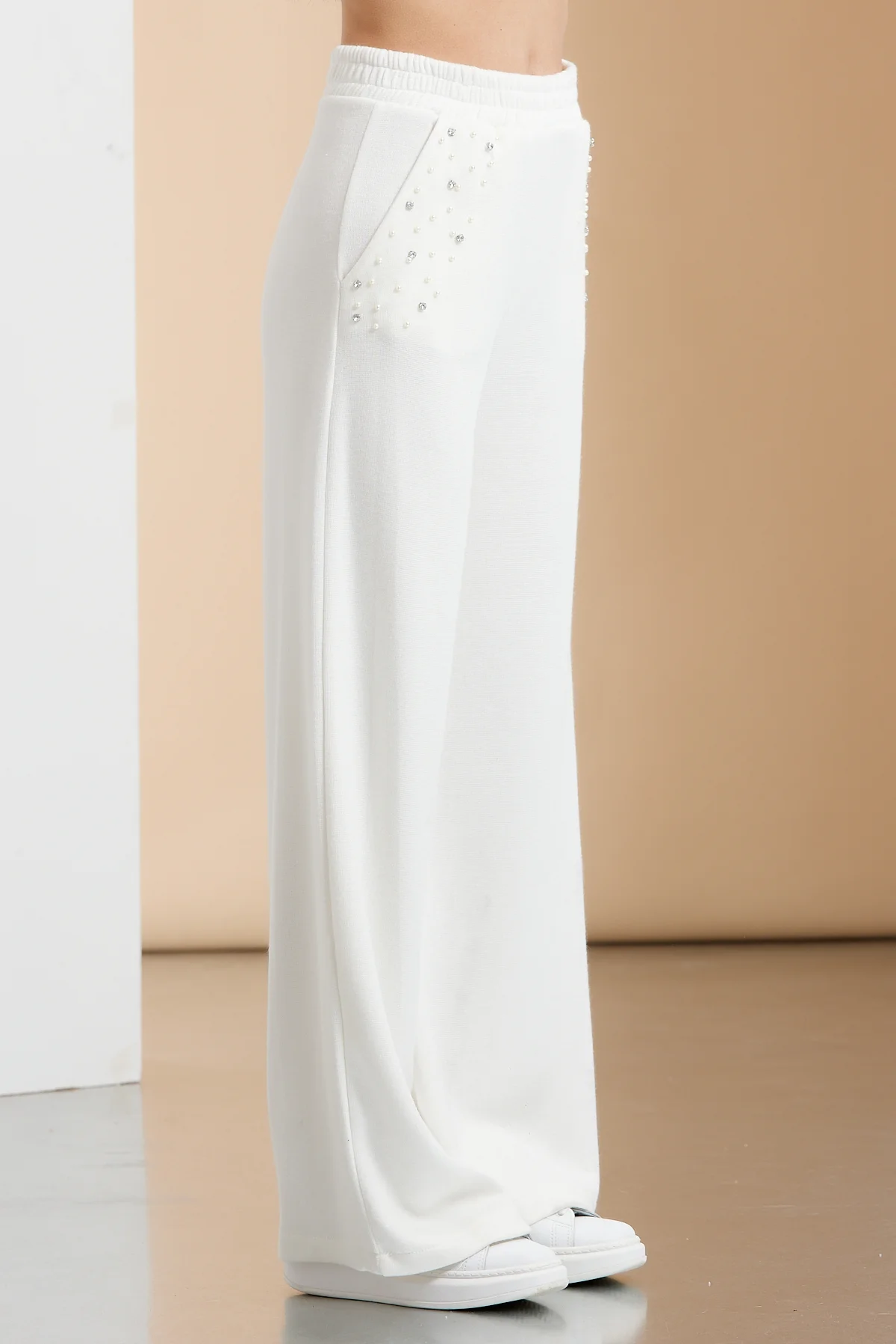PANTALONE PALAZZO CON DETTAGLIO PERLE E STRASS – DTA8973