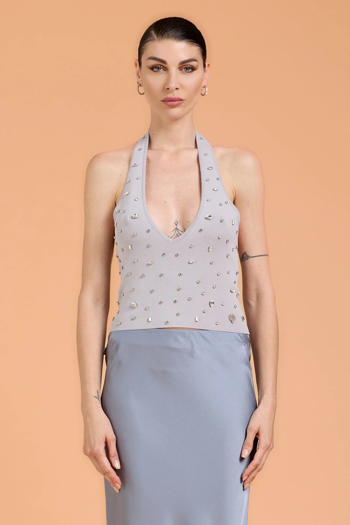 TOP SCOLLO A V CON APPLICAZIONI – DK04035