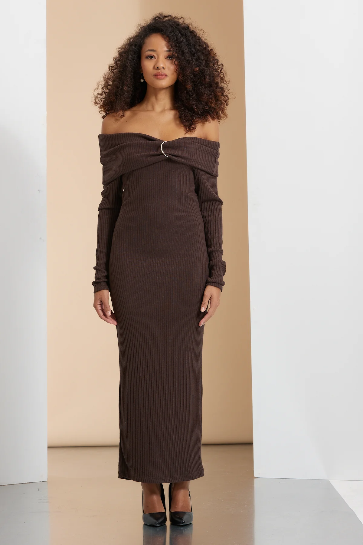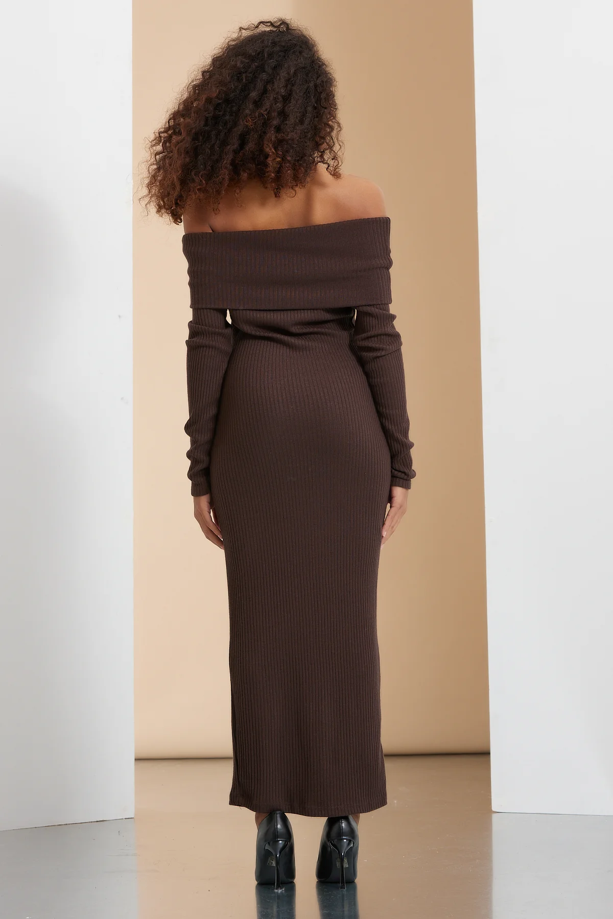 VESTITO LUNGO A COSTE CON SCOLLO A BARCHETTA – DTA8966